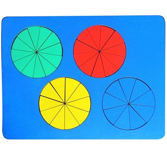 | Информация | Набор, состоящий из деревянного планшета размером 31,5*24*0,6 см с 4 кругами разного цвета. Круги разделены на части: на девять, на десять, на одиннадцать, на двенадцать. Ребенку надо высыпать все части на стол или на пол, а потом - снова уложить кружками в рамки. Согласно методике Никитина, можно играть следующим образом: а) высыпать дроби на стол или на пол; б) перевернуть их окрашенной стороной вверх; в) разложить дроби кучками так, чтобы собрать вместе одинаково окрашенные; г) сложить из каждой кучки кружок одного цвета; д) уложить кружки в рамки.Примерные игры (по рекомендациям Б.П.Никитина).1. Как называются части кружков ("зеленая четвертушка", "желтая половинка", одна вторая, одна треть, одна четвертая).2. Укладывание в ряд по одной части всех цветов: а) по порядку: первой положи самую большую часть, затем поменьше и меньше, и так до самой маленькой, чтобы каждая следующая была меньше предыдущих. б) уложи рядом такие же части, но стопкой. Внизу положи самую большую, а вверху - самую маленькую.3. Какая часть больше: одна пятая или одна четвертая? Накладываем меньшую часть на большую и делаем выводы.4. Сколько частей помещается? Сколько четвертых частей помещается на одной половине? Во сколько раз одна вторая больше одной четвертой? Какие части и сколько поместится точно на одной трети, а на половине? Во сколько раз одна шестая меньше одной третьей? Можно ли из частей разного цвета сложить целый круг? Какие части надо для этого взять?Играя с Дробями, ребенок развивает мелкую моторику, логику, тренирует навыки устного счета, усваивает понятия "часть" и "целое". Пользуясь в игре целым кругом и его частями, дети приобретают представление о дробях, об их соотношениях. |