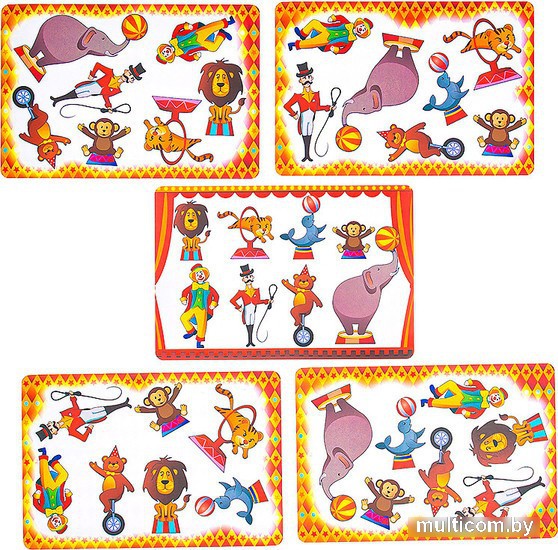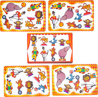| Информация | Материал:бумага, фетр Размер карточек 10 см*15 см Набор карточек может использоваться в качестве самостоятельной игры или в качестве дополнения к кукольному театру «Цирк». Как играть? 1. «Волшебство». На цирковом представлении происходят странные вещи. Цирковая волшебница Эсмеральда решила пошутить: герои цирка исчезают с арены и удивленные зрители не могут досмотреть представление. Давай поможем обнаружить пропажи и остановить шутки волшебницы! 2. «Фокусы». Сложите зеленые двусторонние карточки (№1-14) в одну стопку перед игроками. Ведущий выступает в роли фокусника и показывает игрокам самую верхнюю карту из стопки. Игроки в течение 5-10 секунд внимательно рассматривают карточку, стараясь запомнить, что на ней изображено. Затем ведущий переворачивает карточку на обратную сторону, приговаривая «Алле-оп!». Задача игроков – быстрее всех разгадать фокус: назвать, какой артист исчез или появился на карточке? Игрок, первым разгадавший «фокус», получает билетик в качестве победного очка. |