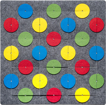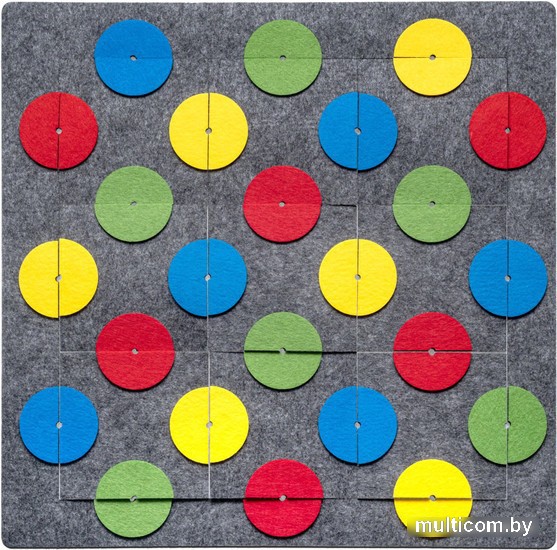 | Информация | Материал: фетр Размер коврика: 32 см*32 см Собственная разработка. Защищено авторским правом. Игра для развития концентрации внимания и умения решать нестандартные задачи Как играть? Выкладывайте квадраты в рамку с учетом цвета кругов. Самые маленькие дети могут пользоваться карточкой - образцом, который прилагается к игре. |