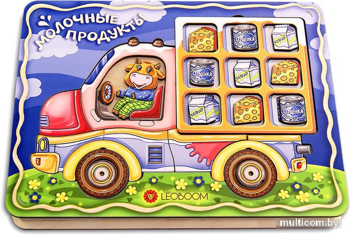 | Информация | Материал: фанера Размер: 24 см*18 см*2,5 см Как играть? 1. Игра «Буренкино». Расскажите ребенку, что молоковоз везет молочные продукты в город из деревни Буренкино. Рассмотрите грузовик вместе с ребенком. Спросите, откуда берется молоко? Какие продукты производят из молока? Обсудите, как молоко попадает в магазин. Расскажите ребенку о профессиях людей, связанных с производством молока: обсудите, где работают и что делают пастух, доярка, фермер, сыровар, фасовщик, продавец. 2. Игра «Собери молоковоз». Предложите ребенку отремонтировать молоковоз, Достаньте все элементы пазла и попросите ребенка собрать молоковоз так, чтобы все детали поместились в рамке. Попросите загрузить молоковоз продуктами. 3. Игра «Молокозавод». Предложите ребенку отправиться на молокозавод, чтобы узнать, как производят молочные продукты. Выберите одну из карточек, попросите ребенка рассказать, например, как из молока приготовить йогурт. |