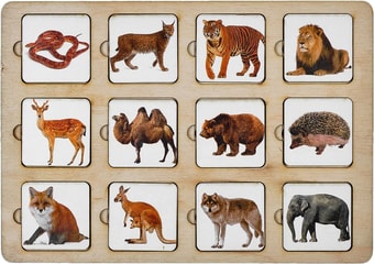 | Информация | 1. Называйте изображенных на планшете животных и имитируйте звуки, которые они произносят.2. Познакомьте ребенка с названиями детенышей:Волк – волчонокВерблюд – верблюжонокКенгуру – кенгуренокЕж – ежонокЛиса – лисенокСлон – слоненокТигр – тигренокМедведь – медвежонокЛев – львенокРысь – рысенокОлень – олененокЗмея - змееныш3. Попросите ребенка ответить на вопросы:У кого есть горб?Кого называют «царь» зверей?У кого есть хобот?Кто умеет рычать?Кто умеет быстро бегать?Кто умеет прыгать?Кто может долго жить без воды?У кого уши похожи на кисточки?Кто имеет пятнистый окрас?Кто умеет ползать?4. Изучайте понятия «верх» - «низ», «справа» - «слева». Попросите ребенка выложить в верхний ряд планшета: лису, волка, медведя и ежика, а в нижний ряд: слона, кенгуру, верблюда и рысь. Попросите ребенка назвать животных, которые находятся справа на планшете; слева на планшете…5. Поиграйте в игру «Что изменилось?». Выложите в ряд 5-6 животных. Попросите ребенка закрыть глаза и поменяйте местами несколько картинок. Попросите малыша сказать, что изменилось.6. Научите ребенка выделять звук, которого начинается слово, например, «с» - слон«л» - лиса«т» - тигр«в» - волк и т.д. |