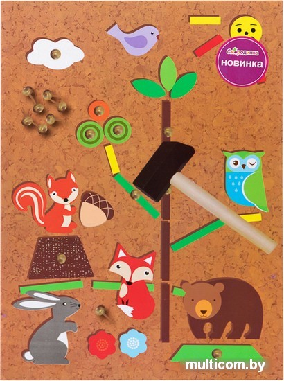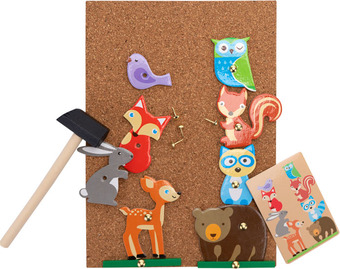 | Комплектация | - фигурки - 8 шт. - деревянные детали - 72 шт. - гвоздики - 80 шт. - деревянный молоток - 1 шт. - пробковая панель - 1 шт. - карточки - 8 шт. - коробка "книжка" -1 шт. |