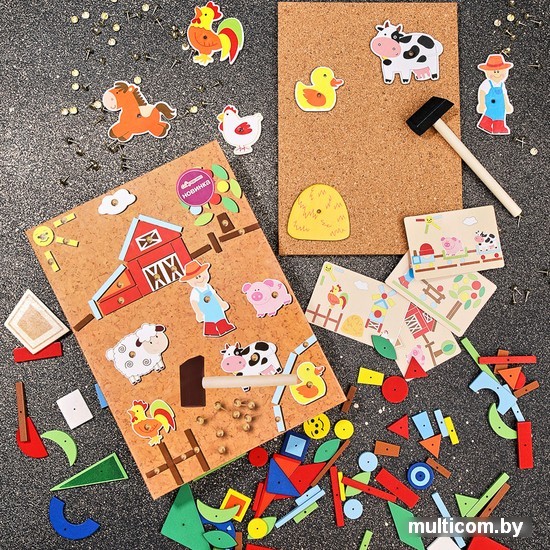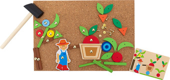 | Комплектация | - фигурки - 9 шт. - деревянные детали - 79 шт. - гвоздики - 80 шт. - деревянный молоток - 1 шт. - пробковая панель - 1 шт. - карточки двухсторонние - 4 шт. - коробка "книжка" -1 шт. |