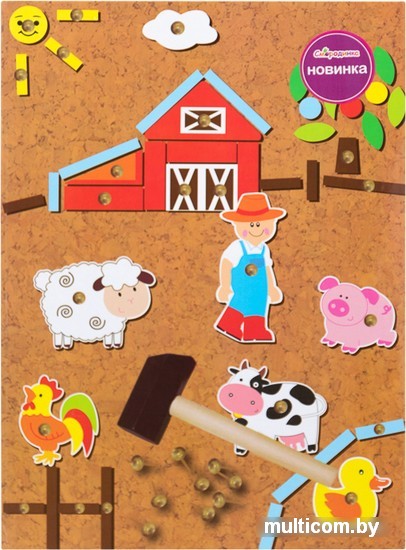 | Информация | Занимательный игровой набор-конструктор Смородинка "В деревне" из серии "гвозди-молоток" состоит из деревянных деталей, покрытых безопасными красками. В комплект конструктора входят гвоздики, деревянный молоток, пробковая панель и карточки с примерами сюжетов. С помощью этого набора ребенок сможет создать более 8 красочных картин. Стоит лишь ориентироваться на рисунки на карточках и молоточком со специальными гвоздиками прибивать детали и фигурки к доске. Благодаря пористой поверхности панели, можно с легкостью менять детали, создавая новые увлекательные эпизоды из деревенской жизни. Детали конструктора аккуратно упакованы в красивую подарочную коробку с магнитной крышкой. |