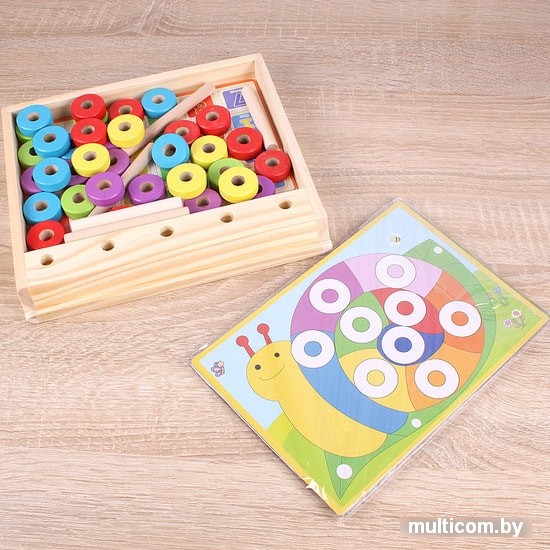 | Комплектация | включает 9 картинок, 5 столбиков, колечки 5-ти цветов и счетные карточки в ассортименте в деревянном боксе |