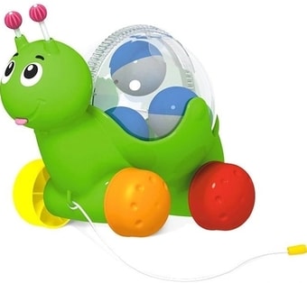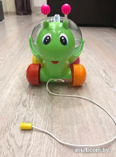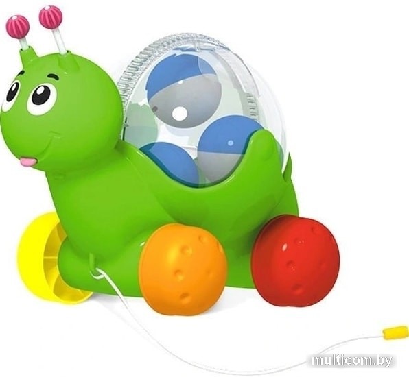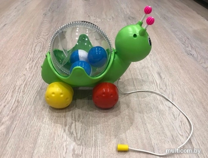 | Информация | Каталка Улиточка станет любимым другом вашего малыша, неизменно сопровождая и развлекая его на всех прогулках. Благодаря веревочке достаточной длины, ребенку будет удобно возить игрушку за собой. Во время движения у каталки вращается прозрачный домик-шар, в котором скачут разноцветные шарики, три больших и один маленький - мигающий разноцветными огоньками. Они весело прыгают и стучат, вызывая настоящий восторг у маленького непоседы. Особое внимание ребенка привлекут движущиеся рожки на голове Улиточки, а разноцветные колесики каталки помогут малышу научиться различать цвета. Игрушка выполнена из прочного и безопасного пластика, легко моется и удобна в хранении. |
