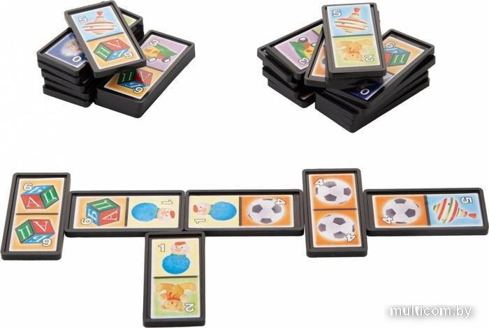 | Информация | Домино — традиционная настольная игра, которая способна увлечь и малышей, и взрослых. А тематическое домино — это еще и хороший способ передать знания ребенку через игру. Домино «Любимые игрушки» подойдет самым маленьким, т.к. с его помощью можно просто учить названия самых популярных у малышей игрушек. Кроме классического варианта игры в домино, костяшки можно использовать и в других играх. Малышам понравится искать похожие картинки, складывать костяшки друг на друга или проталкивать их в отверстия сортера. Для более эффективного использования домино рекомендуется предлагать малышу разные тематические наборы. |