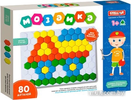 | Информация | Мозаика с крупными шестиугольными фишками вполне подойдет для того, чтобы стать первой мозаикой для малыша. Благодаря форме и размеру фишки абсолютно безопасны для ребенка и способствуют формированию правильного захвата предметов.Также с помощью мозаики можно изучать цвета и понятие длины, выкладывая из фишек разные полоски. |