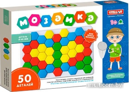 | Информация | Мозаика с крупными шестиугольными фишками вполне подойдет для того, чтобы стать первой мозаикой для малыша. Благодаря форме и размеру фишки абсолютно безопасны для ребенка и способствуют формированию правильного захвата предметов.Также с помощью мозаики можно изучать цвета и понятие длины, выкладывая из фишек разные полоски. |