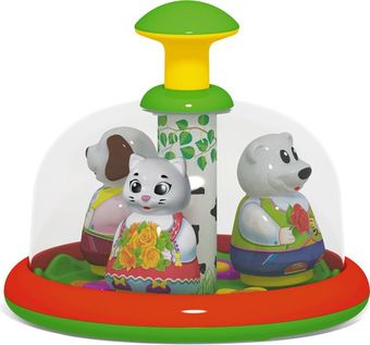 | Информация | Юла-карусель «Хоровод» в пакете — это музыкальная игрушка для самых маленьких. Малыш сможет сам запускать юлу-карусель и следить за тем, как зверушки в нарядных костюмах кружатся вокруг своей оси под веселую народную мелодию. И даже после остановки купола неугомонные зверушки продолжают крутиться, словно в танце. Ребенку будет интересно разглядывать ярких зверушек, разноцветные цветочки и полянку с березкой. Запуская юлу-карусель, малыш изучит причинно-следственные связи и поймет, что может сам влиять на скорость вращения карусели. Цветовое решение игрушки полностью отвечает особенностям младенческого восприятия, а мелодия игрушки станет любимой для исполнения зажигательных танцев у вашего малыша. |