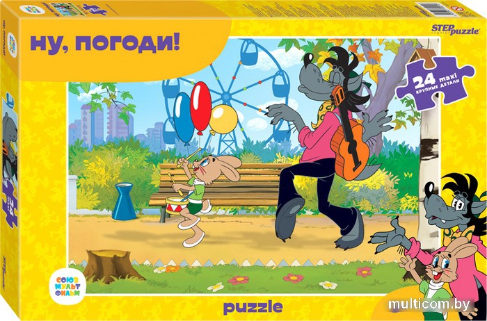 | Информация | Картинка пазла«Ну, погоди!» возвращает нас к знакомой с детства истории о приключениях Волка и Зайца - в этот раз они отправились гулять по парку аттракционов. Пазл состоит из 24 крупных деталей, размер одного элемента сопоставим с ладонью взрослого человека. Ребенку будет легко с ними играть и составлять картинку, также большие детали будет сложно потерять. |