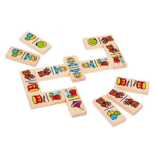 | Информация | Домино "Игрушки" - это 28 деревянных карточек, на которых изображены следующие детские игрушки: ведёрко, юла, кукла, качели, велосипед, плюшевый мишка и мячик. Вашему ребенку будет интересно играть в домино с изображением знакомых и любимых предметов.Домино "Игрушки" способствует развитию у детей логического мышления, наблюдательности, памяти и внимания. |