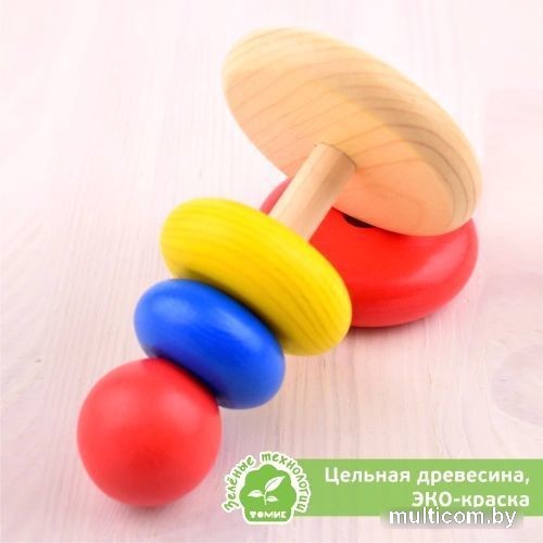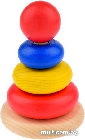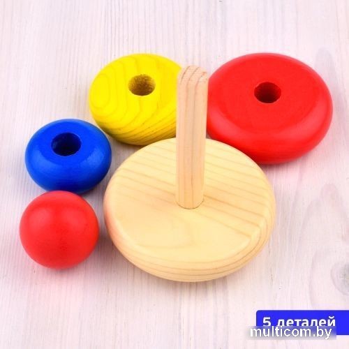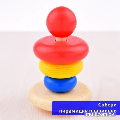 | Информация | Любимая игрушка детства, пирамидка, одна из первых игрушек малыша. Деревянные детали как будто созданы для детских ладошек. Три колечка, три размера, три основных цвета, с которых все начинается: синий, желтый, красный. Игра в пирамидку развивает координацию движений, мелкую моторику, логику, учит ребенка отличать цвета и размеры колечек. Собранная пирамидка станет первым достижением малыша, а округлое основание сделает игру безопасной. Пирамидка изготовлена из березы, состоит из 5 деталей, покрашена водными экологичными красками. |