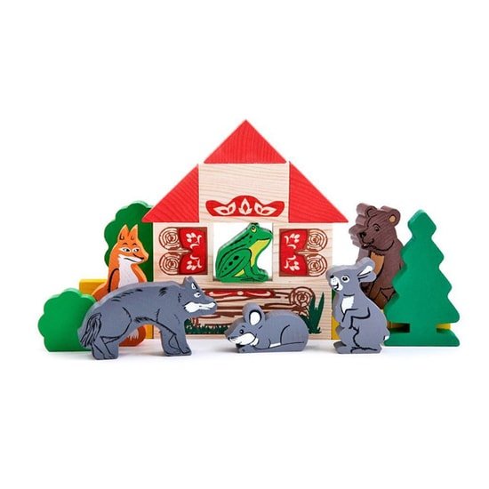 | Информация | Набор из 17 деревянных деталей (6 фигурок сказочных персонажей: медведь, волк, лиса, заяц, мышь и лягушка, а также деревья, кустарники, детали домика) для театральной постановки одноименной русской народной сказки. Кроме фигурок сказочных героев и вспомогательных элементов в набор также входит иллюстрированный вкладыш с текстом сказки. На все детали изображение нанесено с двух сторон. Все фигурки очень удобны для маленькой детской ладошки. Расскажите вашему малышу сказку, разыграйте вместе её сюжет или дайте проявиться фантазии ребенка и предложите ему придумать свою историю."Сказки: Теремок" способствует развитию у детей усидчивости, мелкой моторики, воображения, памяти, активизирует речевой аппарат. Играя в сказку "Теремок", ребенок реализует свои творческие наклонности и в полной мере проявляет детскую фантазию. |
