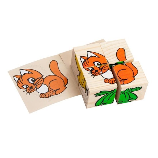 | Информация | "Животные" представляют собой четыре кубика с изображениями шести животных: поросенка, кошечки, зайчика, лягушки, цыпленка, уточки. В набор также входят карточки с готовыми изображениями, которые подскажут малышу, как правильно собрать картинки. Кубики удобные для детской ручки (4х4 см), поэтому с ними могут играть самые маленькие. Первые картинки собирайте вместе, затем позвольте ребенку делать это самостоятельно. В процессе игры расскажите малышу подробнее о животных, нарисованных на кубиках: какие звуки они издают, чем питаются, где живут,в каких сказках их можно встретить. Игрушка входит в серию "Сложи рисунок".Собирание кубиков "Животные" способствует развитию у детей мелкой моторики, логического мышления, внимания, памяти,формирования умения составлять целую картинку из частей. Ребенок познакомится с животными, живущими рядом с человеком, больше узнает о них. |