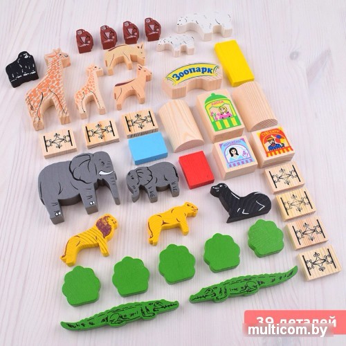 | Информация | Давай построим зоопарк! В конструкторе "Зоопарк" от ТОМИКа всё как в настоящем зоопарке, высокие ворота, касса, даже киоск с мороженным, но самое главное - разнообразные животные. В зоопарке поселится жирафы, слоны, крокодилы, белые медведи, озорные обезьянки и конечно же царь зверей, лев! Конструирование способствует развитию воображения, мелкой моторики, усидчивости. Конструктор "Зоопарк" отлично сочетается с другими наборами серии: "Транспорт" "Веселый городок" и др. Построй свой собственный мир вместе с ТОМИКом! Конструктор изготовлен из сосны, состоит из 39 деталей, все рисунки выполнены водными экологичными красками. |