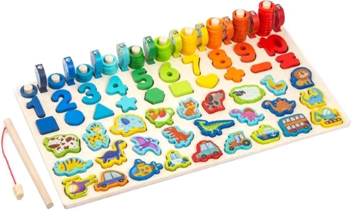 | Информация | Многофункциональная развивающая доска 5 в 1 представляет собой целый комплекс занимательных упражнений для развития детской логики. В непринужденной игровой форме. Ваш ребенок изучит: цвета и их оттенки; цифры от 1 до 10: рыбки, фигурки «Цифры» и колечки можно использовать, как счетный материал, для знакомства с цифрами и в процессе обучения счету; различные геометрические формы: формы-фигурки предназначены для познания различных геометрических фигур; познакомиться с разными видами транспорта и некоторыми животными. Помимо развития детской логики, во время игры у Вашего малыша тренируется память, внимание, усидчивость и логическое мышление. Многофункциональная развивающая доска является идеальным подарком для Вашего малыша! |