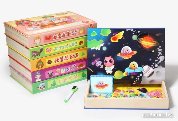 | Информация | ? Магнитный пазл включает в себя деревянную коробку с крышкой, магнитные элементы и карточки-инструкции. ? Дети могут использовать карточки-инструкции для создания аналогичных картинок или придумывать свои собственные. ? В наборе также есть маркер, который позволяет детям писать или рисовать на обратной стороне крышки. ? Магнитный пазл способствует развитию воображения, логики, усидчивости и мелкой моторики у детей. ? Отличный подарок для развития воображения и проведения увлекательных творческих экспериментов. |