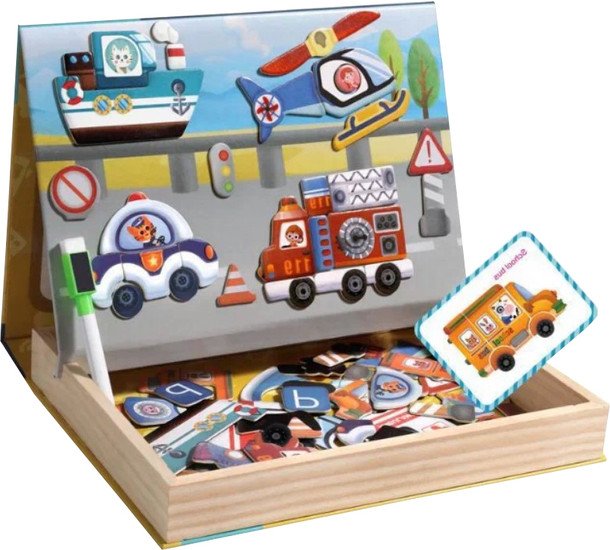 | Информация | ? Магнитный пазл включает в себя деревянную коробку с крышкой, магнитные элементы и карточки-инструкции. ? Дети могут использовать карточки-инструкции для создания аналогичных картинок или придумывать свои собственные. ? В набор входит маркер для рисования на обратной стороне крышки. ? Магнитный пазл способствует развитию воображения, логики, усидчивости и мелкой моторики у детей. ? Отличный подарок для развития воображения и проведения творческих экспериментов. ?? Невозможно оторвать ребенка от увлекательного творческого процесса. |
