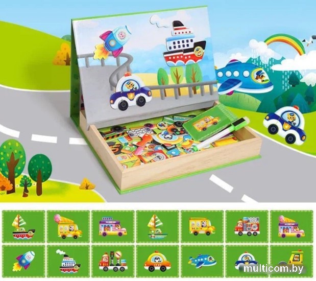 | Информация | ? Веселый транспорт JHTOY-235 - это развивающий игровой набор, который включает в себя магнитный пазл в деревянной коробке с крышкой, магнитные элементы и карточки-инструкции. ? Дети могут использовать карточки-инструкции для создания аналогичных картинок или придумывать свои собственные изображения, используя магнитные элементы. ? В набор также входит маркер, который позволяет детям писать или рисовать на обратной стороне крышки. ? Этот набор помогает развивать у детей воображение, логику, усидчивость и мелкую моторику. ? Отличный подарок для развития воображения и проведения увлекательных творческих экспериментов. |