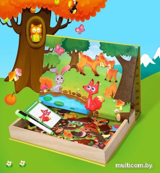 | Информация | ? Магнитный пазл включает в себя деревянную коробку с крышкой, магнитные элементы и карточки-инструкции. ? Дети могут использовать карточки-инструкции для создания картинок или придумывать свои собственные. ? В наборе есть маркер для рисования на обратной стороне крышки. ? Магнитный пазл способствует развитию воображения, логики, усидчивости и мелкой моторики. ? Отличный подарок для развития воображения и творческого процесса. |