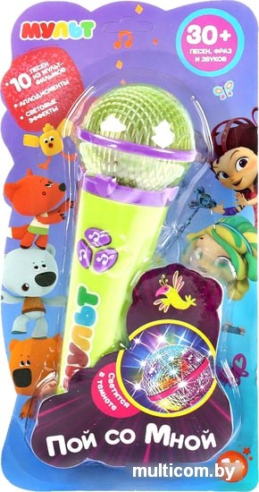 | Информация | Развивающий микрофон «Мульт» ТМ «УМка» для маленьких вокалистов:- 10 песен из мультфильмов: «Отражает Небо», «Город Мышкин», «Знакомство» из м/ф Сказочный патруль; «Заставка», «Песня Тучки», «Ла-ла-ла» из м/ф Ми-ми-мишки; «Заставка», «Феофан» из м/ф Лео и Тиг; «Заставка», «Зарядка» из м/ф Деревяшки- звуковые эффекты (звуки аплодисментов)- световые эффекты (светится в темноте)Играя с микрофоном, дети находят связь между своими действиями и звуками, исходящими от игрушки. Игры сформируют основу для последующего развития музыкального вкуса ребёнка, подготовят его к творческой деятельности и просто порадуют.Микрофон ТМ «УМка» развивает:- звуковое восприятие и музыкальный слух- творческое мышление- артистизм- чувство ритма |