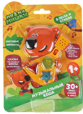 | Информация | Мультиплеер «Ми-ми-мишки. Музыкальный Кеша» ТМ «УМка» станет прекрасным подарком для ребёнка: - 5 песен из м/ф: «Заставка», «Ла-ла-ла», «Песня Кеши», «Облака», «Песня Тучки» - сказка «Три медведя» - 3 стиха про формы - фразы героев из мультика - световые эффекты |