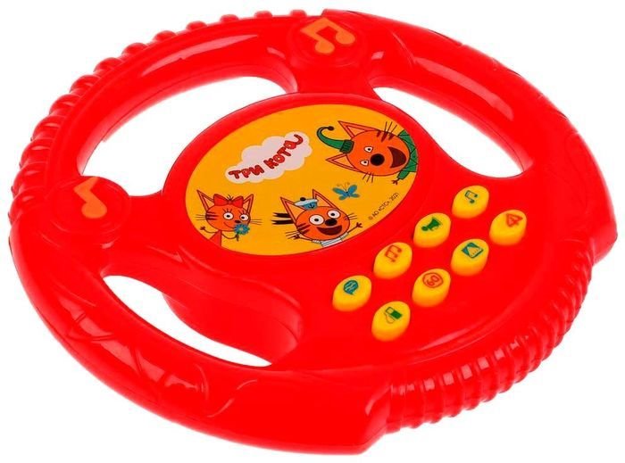 | Информация | Музыкальный руль «Три кота» понравится юным поклонникам мультсериала про любознательных котят: - 13 песен, звуков и цветов - учим пдд - любимые герои - яркий дизайн Ваш ребенок оценит этот красочный руль с изображением персонажей популярного детского мультфильма. Он с удовольствием будет нажимать на кнопки, слушать веселые песенки, имитировать звук поездки и, конечно, рулить. С этой увлекательной игрушкой маленький водитель сможет придумать множество новых игровых сюжетов. Игра с музыкальным рулем развивает: - моторику - мышление - воображение и фантазию - звуковое восприятие и музыкальный слух - память |