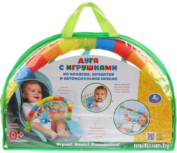 | Информация | ? Яркая дуга с игрушками на подвеске создаст отличное настроение вашему ребенку. ? С этой игрушкой вашему малышу будет уютно и радостно, как дома, так и на прогулках. ? Дуга с игрушками способствует развитию мелкой моторики, логического и образного мышления, а также визуального и пространственного восприятия. ? Функциональность дуги с игрушками включает 4 варианта использования: можно установить на коляску, детскую кроватку-колыбельку, автомобильное кресло; также есть 2 положения для игры. ? В комплекте имеются 3 съемные игрушки и 2 надежных крепления. |