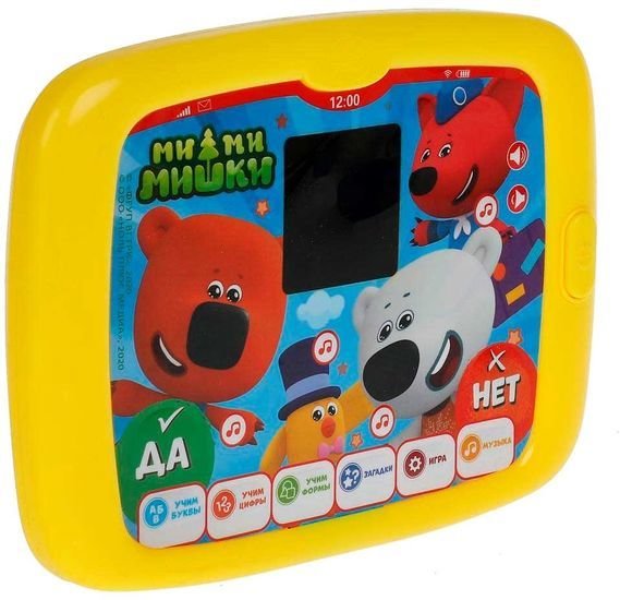 | Информация | Планшет с обучающим экраном «Ми-ми-мишки» станет прекрасным подарком для маленьких поклонников одноименного мультсериала: - 5 песен из м/ф: «Заставка», «Ла-ла-ла», «Песня Кеши», «Песня Тучки», «Облака» - LED-экран - стихи, звуки, вопросы и загадки - учим буквы, цифры и формы Игрушка-планшет — креативный и полезный подарок для развития и игры. Такой планшет поможет ребенку быстро и эффективно выучить буквы, формы и цифры. Малыш с удовольствием будет нажимать на яркие кнопки и слушать песни, отгадывать загадки и разглядывать изображения на обучающем экране. Компактный размер позволяет повсюду брать игрушку с собой. Занятия с обучающим планшетом способствуют расширению кругозора и развивают: - звуковое восприятие и музыкальный слух - память - мелкую моторику - фантазию - речь |