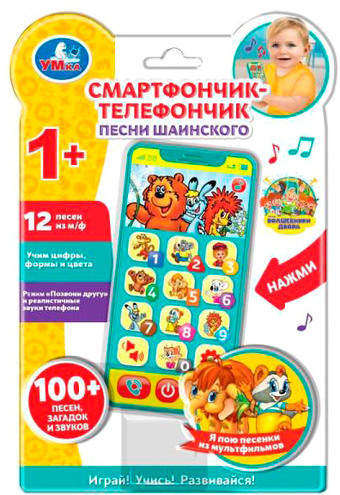 | Информация | Смартфончик-телефончик «Песни Шаинского» ТМ «УМка» непременно понравится малышу: - 12 песен: «Чунга-Чанга», «Антошка», «Веселая карусель», «Песенка Мамонтенка», «Небылицы», «Белые кораблики», «Улыбка», «Облака», «Песенка Чебурашки», «Песенка крокодила Гены», «Смайлики» (Волшебники двора), «Волна» (Барбарики) - реалистичные звуки телефона - режим «Позвони другу» - учим цифры, формы, и цвета - загадки про формы - режим экзамена - кнопка «Вкл./Выкл.» - регулировка громкости Яркий телефон сделает обучение малыша легким и интересным. Он с удовольствием будет нажимать на разноцветные кнопочки и слушать веселые песенки и звуки, а так же разгадывать загадки. Кроме того, в легкой игровой форме он познакомится с цифрами и понятиями «цвет» и «форма». Компактную игрушку удобно брать с собой. Обучающий телефон ТМ «УМка» развивает: - память - слуховое восприятие и музыкальный слух - тактильные навыки - визуальное восприятие - моторику Размер игрушки: 7 x 12 x 2 см. Материал: пластмасса. Работает от 3-х батареек типа ААА (в комплекте). Рекомендовано детям от 1 года. |