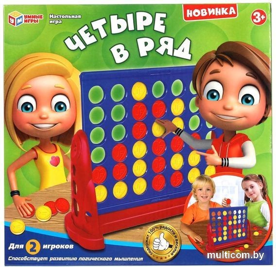 | Информация | Настольная игра «Четыре в ряд» ТМ «Умные игры» — веселое развлечение для детей и взрослых: для 2-х игроков; яркие цвета. В комплекте: игровое поле на подставке; фишки 2-х цветов. Цель этой логической игры собрать 4 фишки своего цвета в ряд по горизонтали, вертикали или диагонали, что будет не так-то просто, ведь та же задача стоит и перед вторым игроком. Постоянно меняющиеся ситуации на доске, требующие стратегического мышления, подарят вам и вашим детям множество весёлых минут. |
