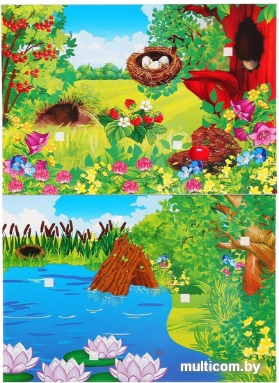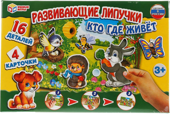 | Информация | В процессе игры ребёнок должен найти для каждого животного своё место на карточке и прикрепить его на липучку. Например, сороку нужно поместить на ветку дерева, а белку - рядом с дуплом. Ребёнок может экспериментировать и размещать животных на разных карточках многократно - липучки очень качественные. |