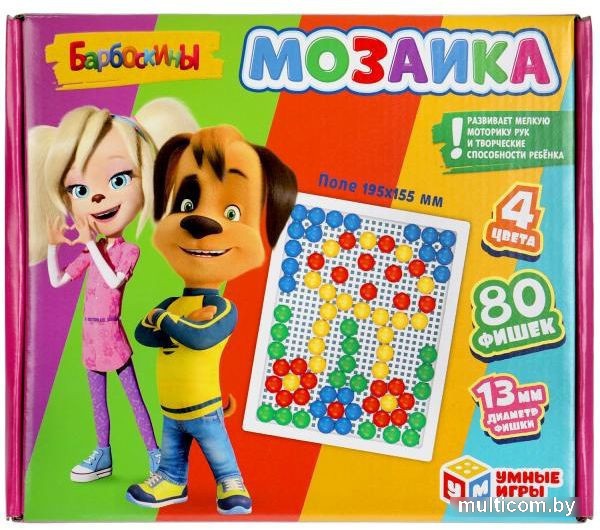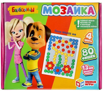 | Информация | Пластиковая мозаика «Барбоскины» ТМ «Умные игры» - интересная развивающая игра для детей: - 80 пластиковых фишек - диаметр фишек: 13 мм - 4 цвета - красочная упаковка с любимыми персонажами Набор состоит из прямоугольного поля-основы и разноцветных круглых пластиковых деталей, используя которые маленький любознайка сможет собрать самые разные варианты картинок. Игра с мозаикой ТМ «Умные игры» способствует развитию: - мелкой моторики - творческих способностей - логического мышления - внимания - памяти Размер игрового поля: 195 х 155 мм. Материал: пластик. Рекомендовано детям от 3-х лет. |