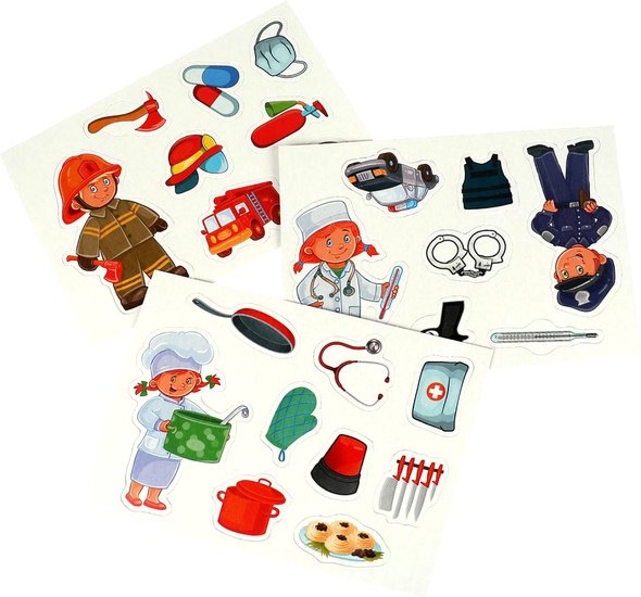| Информация | Развивающая игра с липучками «Профессии» ТМ «Умные игры» - отличный подарок для маленького любознайки: - тематические детали - 4 красочные карточки - крепление в виде липучек - знакомимся с профессиями В процессе игры ребёнок должен найти для каждой детали своё место на карточке и прикрепить её на липучку. Даже если малыш ошибся, ничего страшного - фигурки всегда можно переклеить, причём многократно - липучки очень. |