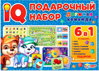 | Информация | IQ-подарочный набор 6 в 1 «Дружная команда» — отличный подарок для маленьких любознаек: - лото: соотносим изображения на фишках с изображениями на карточках-основах - мемо: запоминаем и сопоставляем объекты - пазлы с буквами: складываем алфавит и примеры слов - пазлы с цифрами: ищем и складываем картинки с цифрами и соответствующим им количеством предметов - домино: комбинируем фишки в соответствии с изображениями и цифрами на них - игра-ходилка (игральный кубик и 4 фишки в комплекте): кидаем кубик и устремляемся к финишу, изучая в процессе цифры - любимые персонажи - 3 пазла с картинками в подарок Ребенок сможет весело и с пользой провести время за увлекательными играми из этого набор. Игры познакомят малыша с буквами и основами счёта, а милые друзья-щенки помогут ему в этом и сделают занятия интереснее. Благодаря компактным размерам набор удобно брать с собой в дорогу. Игровые занятия с набором расширяют словарный запас и кругозор, а также развивают: - логику - внимание - моторику - память - речь |