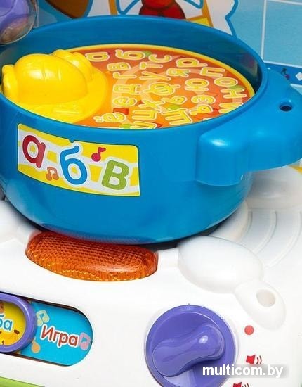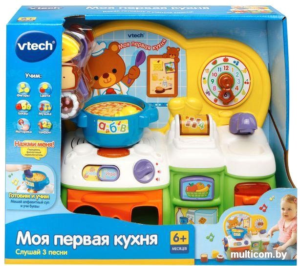 | Информация | Моя первая кухня от компании Vtech – превосходный игровой набор для маленьких хозяюшек и замечательный подарок для каждого ребенка.На очаровательной маленькой кухонке малыш сможет приготовить суп из алфавита, поиграть с духовкой-сортером, а также узнать много нового. Игра сопровождается полезной информацией или веселыми песенками.В процессе игры малыш сможет выучить названия фигур, цифр от 1 до 4, цветов, букв и подпевать в такт мелодиям. |