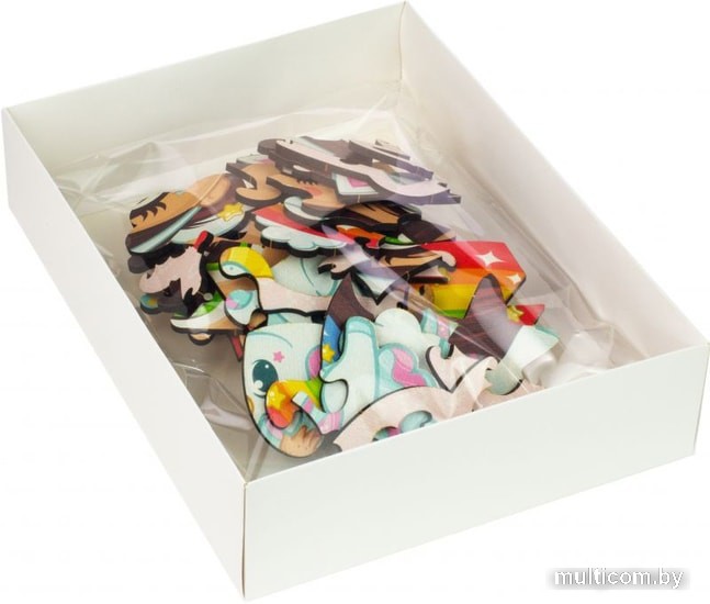 | Комплектация | коробка картонная, набор фигурных пазлов-51 шт., схема сборки, Вудлик-магнит в подарок, листовка про Вудлика |
