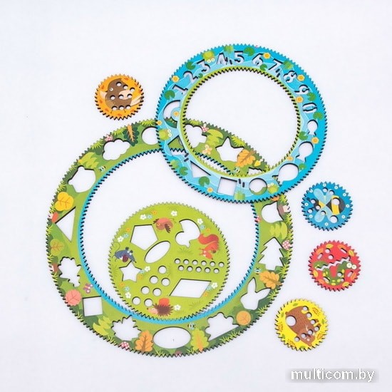 | Информация | Спирограф – многофункциональная высокоинтеллектуальная деревянная развивающая игрушка для рисования. Спирограф - это деревянная модификация популярной игрушки. Спирограф имеет яркое оформление с тематическими изображениями, состоит из 2 зубчатых колес с фигурными трафаретами для рисования и 5 кругов-шестеренок. Использовать рисоватор очень просто. На листе бумаги расположите зубчатое колесо рисоватора, в него поместите один круг. В одном из отверстий круга зафиксируйте кончик пишущего предмета (ручка, карандаш, фломастер и т.д.) и начните совершать вращательные движения рукой. На бумаге появится спиралевидный узор. Используя различные пишущие принадлежности и отверстия кругов, можно получить бесконечное множество замечательных рисунков. Занятия со спирографом развивают внимание, память, мышление, тренируют координацию движения и моторику рук, воспитывают терпение, усидчивость, любознательность и познавательную активность. Деревянный Спирограф благотворно влияет на формирование творческих способностей малыша, и, несомненно, станет любимой игрушкой юного художника. |