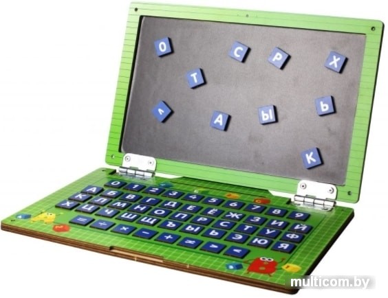 | Информация | Ноутбук – это удивительная игрушка для знакомства с алфавитом и математическими знаками. Игрушка представляет собой конструкцию в виде переносного персонального компьютера, имеет дисплей – магнитную доску и клавиатуру с вкладышами – кнопками. С ноутбуком ребенок с удовольствием научится работать по образцу, сортировать, сравнивать и анализировать, складывать слоги, составлять слова. Игры и занятия с Ноутбуком развивают мышление, память, воображение, зрительное и тактильное восприятие, стимулируют мелкую моторику и координацию движения, формируют любознательность и самостоятельность. Ноутбук поможет разнообразить досуг ребенка и подарит массу положительных эмоций. |