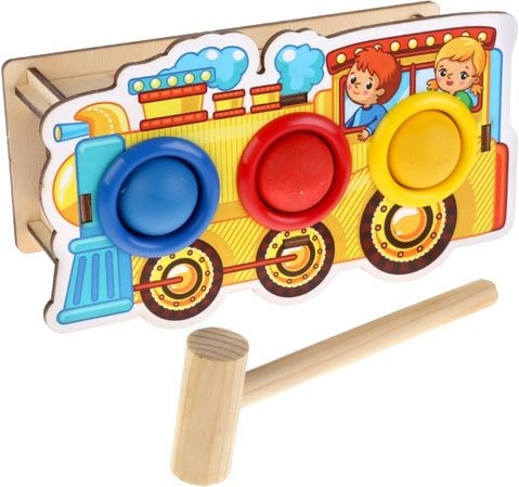 | Информация | Стучалка – развивающая игрушка для любознательных непосед. Игрушка представляет собой прямоугольный объёмный деревянный корпус с цветными пластиковыми отверстиями-сортировщиками, пластиковые шарики и деревянный молоточек. Задача ребенка – раскладывать в отверстия по цвету шарики, воздействовать на них рукой или молоточком и ловить, когда они выкатываются из специального бокового отверстия. Этот занимательный процесс приносит ребенку массу положительных эмоций и развивает любознательность. Игры со Стучалкой развивают логическое, образное и предметно-действенное мышление, память, восприятие цвета и звука, тренируют мелкую моторику и координацию движения. Стучалка – удивительная игрушка, которая очень понравится любому ребенку и поможет с пользой провести время. |