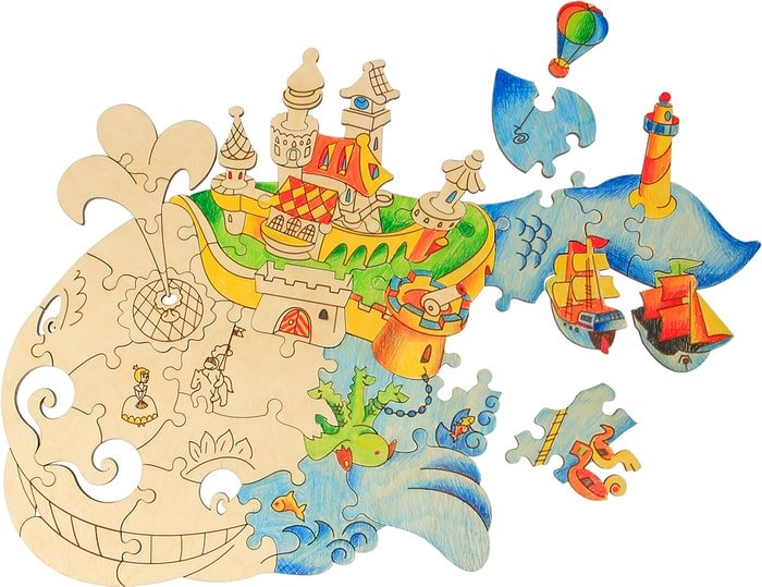 | Информация | Вы где-нибудь видели пазл из дерева, в основу которого положен классический сказочный персонаж?В игрушке-пазле "Чудо-Юдо Рыба-Кит" есть все сказочные атрибуты: крепость, дракон, рыцарь, принцесса, и конечно — фонтан у кита. Неделю будете рассказывать малышу удивительные истории и каждый раз — новую! |