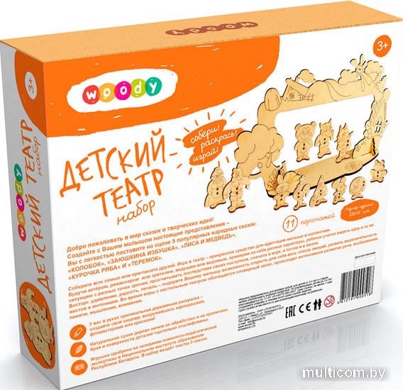 | Информация | С помощью игрушки "Детский театр" Вы сможете рассказать малышам и поставить на "сцене" 5 популярных народных сказок: "Колобок", "Теремок", "Курочка Ряба", "Лиса и медведь" и "Заюшкина избушка". Декорации и тексты сказок входят в комплект!Исполнение ролей и диалоги между персонажами способствуют обогащению и активизации словаря ребенка, формированию его грамматического строя, развитию навыков и умений диалогической речи.В комплект входит пошаговая инструкция по сборке. |