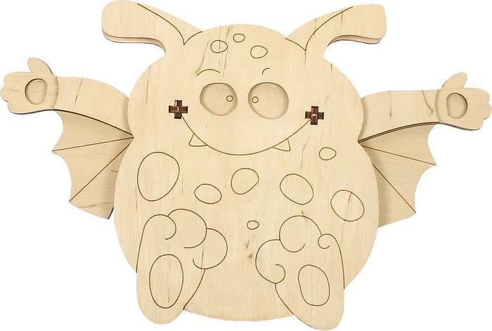 | Информация | Это безумно симпатичный монстрик просто умиляет: он моргает глазами и машет руками-крыльями. Может, он учит нас летать?Разукрасьте карандашами, фломастерами или красками: "Мышь Кыш" подарит радость и украсит интерьер детской комнаты.В комплект входит пошаговая инструкция по сборке. |