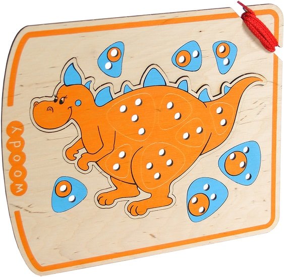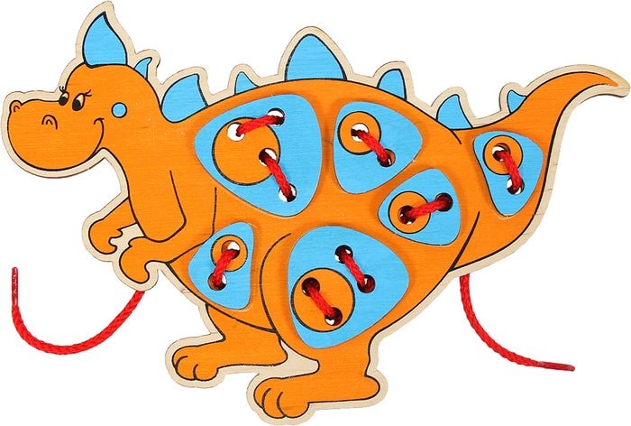 | Информация | Шнурозаврик — это наш вариант классической игрушки-шнуровки.Развивает у малышей мелкую моторику, готовит руку к письму, формирует навыки счёта, восприятие размера "больше-меньше".Полезные задания для любопытных исследователей:1. Привяжи шнурком пятна Шнурозаврику.2. Разложи пятнышки по размерам: от большего к меньшему.3. Свяжи их шнурком в пирамидку. |