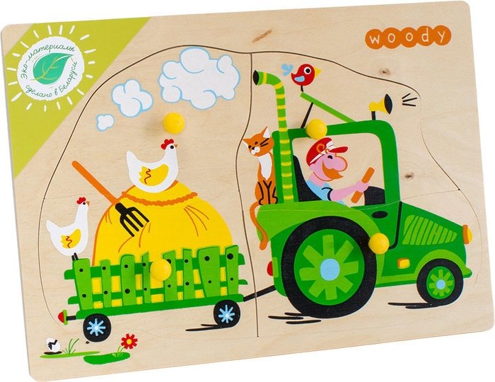 | Информация | Пазл-вкладыш с удобными держателями для детской ручки с занимательным сюжетом познакомит малыша с темой сельской жизни. Внимательно изучая картинку, малыш увидит трактор, трудолюбивого водителя, любопытную птичку, важного котика, курочек-подружек.Спросите у вашего малыша, какие еще домашние животные могли бы быть на этой картинке. Придумайте вместе интересные истории о жизни за городом.Старательно подбирая и устанавливая картинку на подходящее место, ребёнок учится координировать свои движения, развивает глазомер, тренирует мелкую моторику рук, что способствует раннему развитию речи и мышления, а также усидчивости и внимания.Материал игрушки – дерево, покрыто безопасными краской и лаком, предназначенными для детских игрушек. |