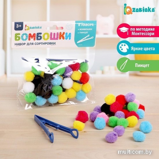 | Информация | Сортер «Бомбошки» подходит для занятий по методике Монтессори. С набором малыш быстро запомнит цвета и научится считать. В комплект входят яркие шарики-бомбошки и пинцет для сортировки. Как пользоваться набором? Помогите крохе научиться держать пинцет в ручках и цеплять им мелкие бомбошки. Попросите малыша с помощью пинцета рассортировать бомбошки по количеству или цветам. Усложняйте процесс: предложите выполнить задание на время. Набор для сортировки «Бомбошки» рекомендован детям старше 3 лет. Играть следует под присмотром родителей. |