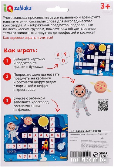 | Информация | ??Текст описания составлен при помощи искусственного интеллекта. ? Развивающий игровой набор Zabiaka IQ Логопедический кроссворд 10124949 - отличный выбор для детей в возрасте от 3 до 6 лет. ? Этот набор способствует развитию логики, внимания, речи, чтения, памяти и эрудиции у малышей. ? С помощью этого кроссворда дети смогут изучать счет, алфавит, а также развивать свои навыки в этих областях. ? Изготовлен из качественного материала - картон и бумага, что делает игру безопасной и прочной. ? Универсальное назначение этого набора делает его отличным выбором для всех детей в возрасте от 3 лет и старше. ?? Забавный и полезный подарок для развития навыков у детей! |