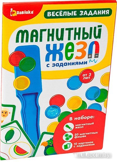 | Комплектация | Магнитный жезл. Магнитные фишки, 20 шт. Картинки с заданиями, 10 шт. |