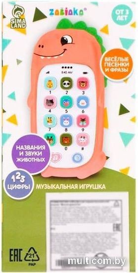 | Информация | Вместе с милым зверьком кроха разовьет мелкую моторику, память, воображение, мышление, визуальное и слуховое восприятие. Нажимайте на кнопочки телефончика, запоминайте цвета и животных. Расскажите ребенку о цифрах и обучите его счету. Изделие удобно держать в маленькой ручке и нажимать на кнопочки. Малыш услышит 8 песенок: «Я стою на сцене», «Знаю танец я простой», «Учимся считать», «Я рисую», «Мы с тобой попляшем», «Зоопарк», «Мы играем целый день», «Колыбельная». Малыш услышит звуки животных: свинка, ослик, корова, кошка, курица, лошадь, собачка, коза. Есть регулировка громкости, веселые фразы и цифры до 10. |